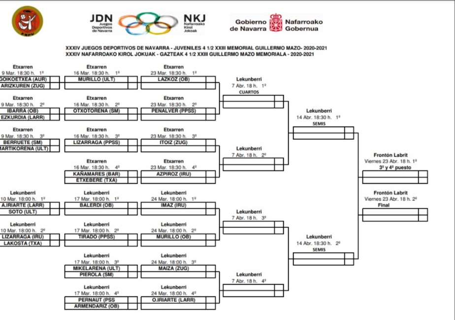 Esta tarde, a partir de las 18:30 en Etxarren comenzará el campeonato Guillermo Mazo 2021 o el campeonato juvenil de Nafarroa dentro de la disciplina del cuatro y medio.